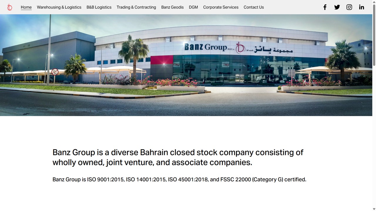 Banz Group B.S.C. (Closed) هي شركة بحرينية مساهمة مغلقة ومتنوعة تمتد أعمالها في المجالات اللوجستية، التخزين، التداول والمقاولات، وإدارة العقارات والاستثمارات الاستراتيجية. تأسست بهدف تقديم حلول متكاملة تُضيف قيمة حقيقية لعملائها وشركائها من خلال خدمات متقدمة في الخدمات اللوجستية، التخزين بدرجات حرارة مختلفة، التوزيع، المشاريع الهندسية، وتطوير الأعمال، مع التزام قوي بأعلى معايير الجودة والأخلاقيات المهنية. تسعى الشركة إلى أن تكون الشريك الاستراتيجي الموثوق به في الأسواق المحلية والإقليمية، وتحقق نموًا مستدامًا يمكنها من دعم تطلعات الأعمال وتحقيق أثر إيجابي في المجتمعات التي تعمل فيها.