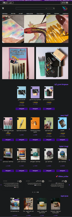 متجر إلكتروني متخصص في بيع الأدوات الفنية ومستلزمات الرسم، بما يشمل الألوان المائية، دفاتر الرسم، الفرش، والمنتجات الإبداعية، إضافة إلى تصميم وتقديم منتجات فنية وأعمال فنية أصلية.