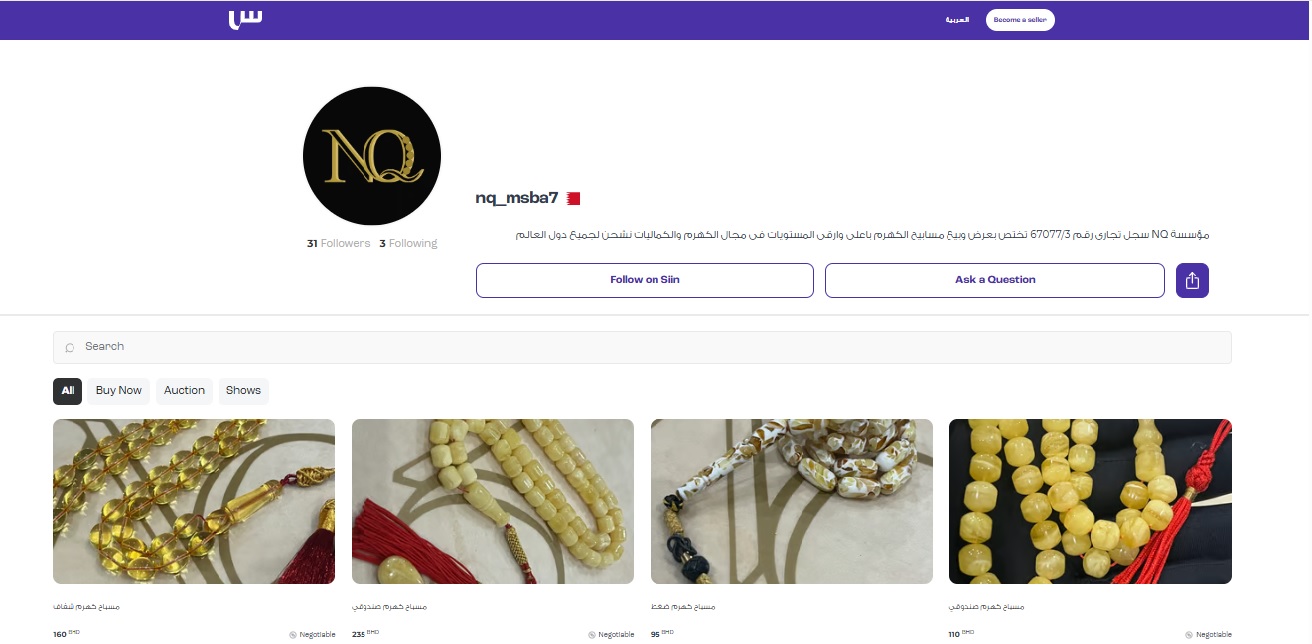 مؤسسة NQ سجل تجاري رقم 67077/3 تختص بعرض وبيع مسابيح الكهرم باعلى وارقى المستويات في مجال الكهرم والكماليات نشحن لجميع دول العالم.