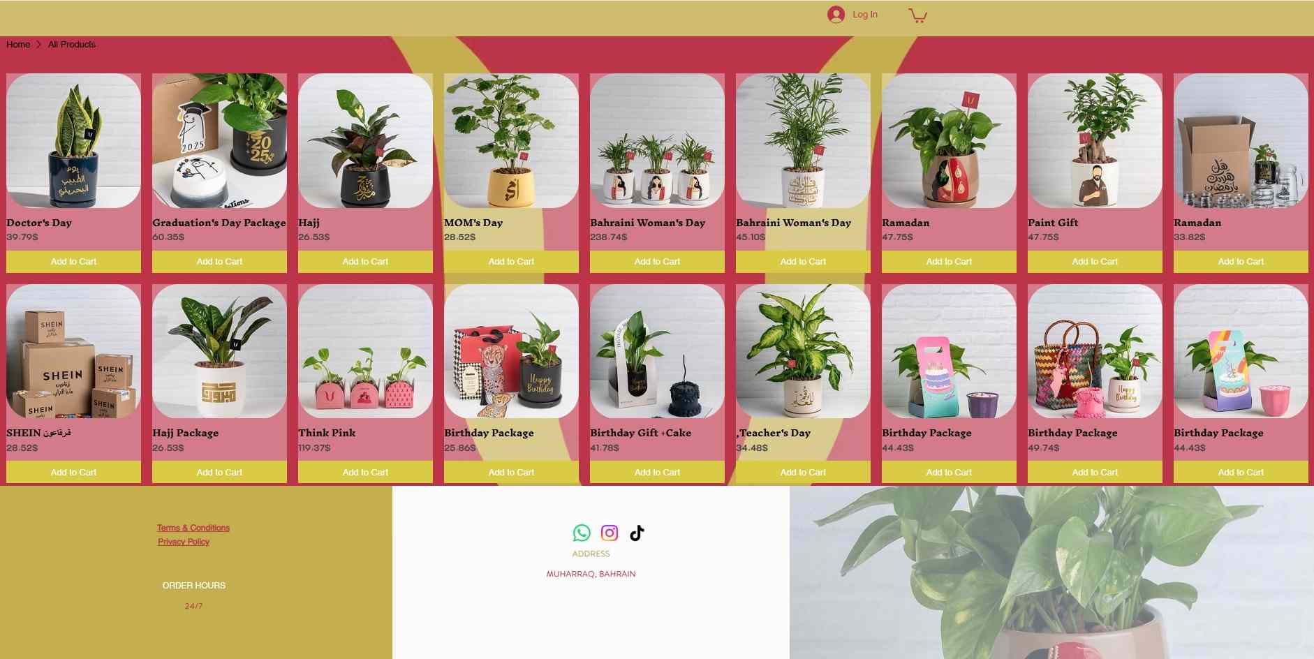 أهلاً بكم في متجرنا! سعداء جداً بتواجدكم! تفضلوا بزيارة متجرنا واستكشفوا مجموعتنا الساحرة من النباتات الجميلة والهدايا الفريدة، كل منها مختارة بعناية لتضفي لمسة من البهجة والخضرة على حياتكم. سواءً كنتم تُضفون البهجة على منزلكم أو تُحتفلون بشخص عزيز عليكم، يسعدنا مساعدتكم في العثور على هدية مميزة.